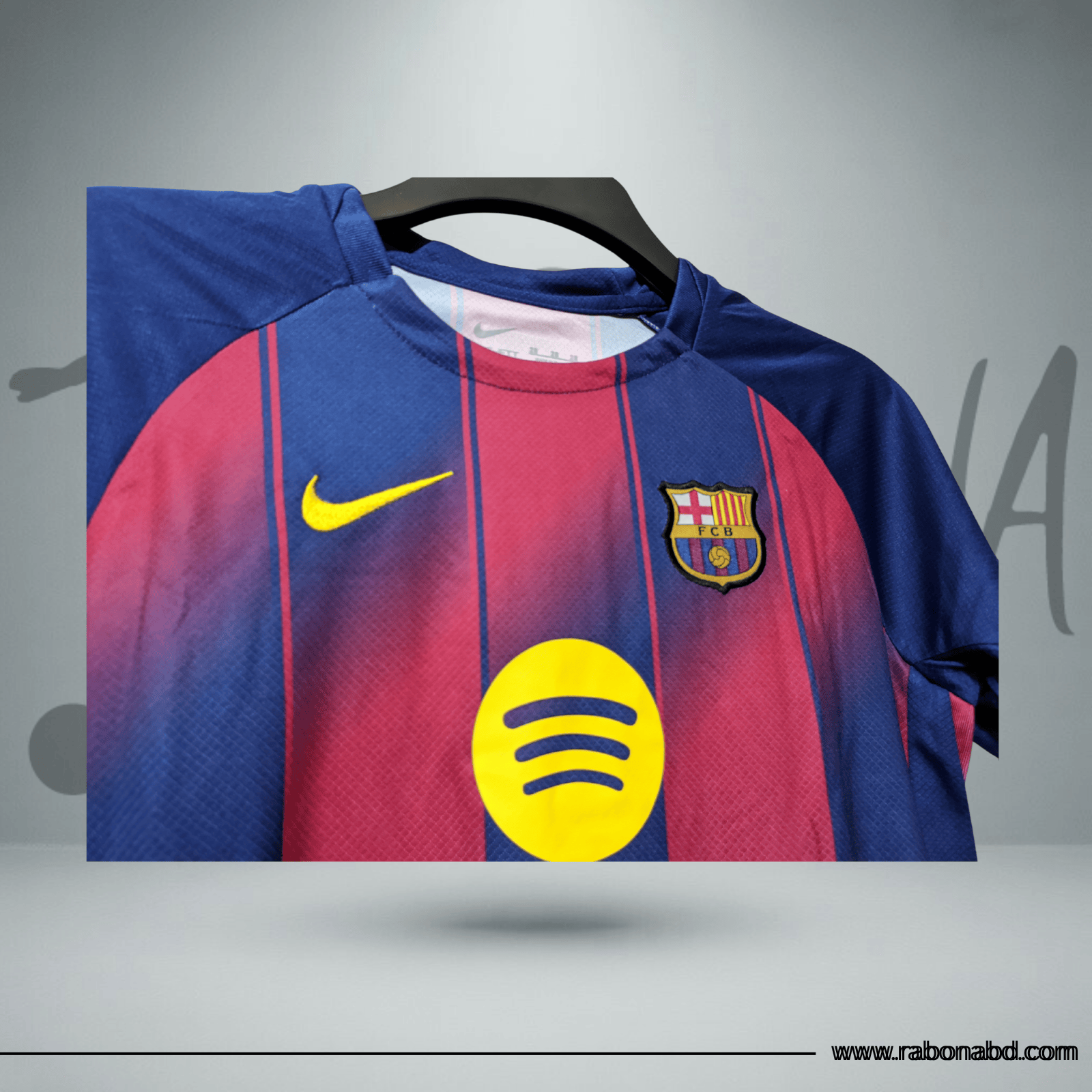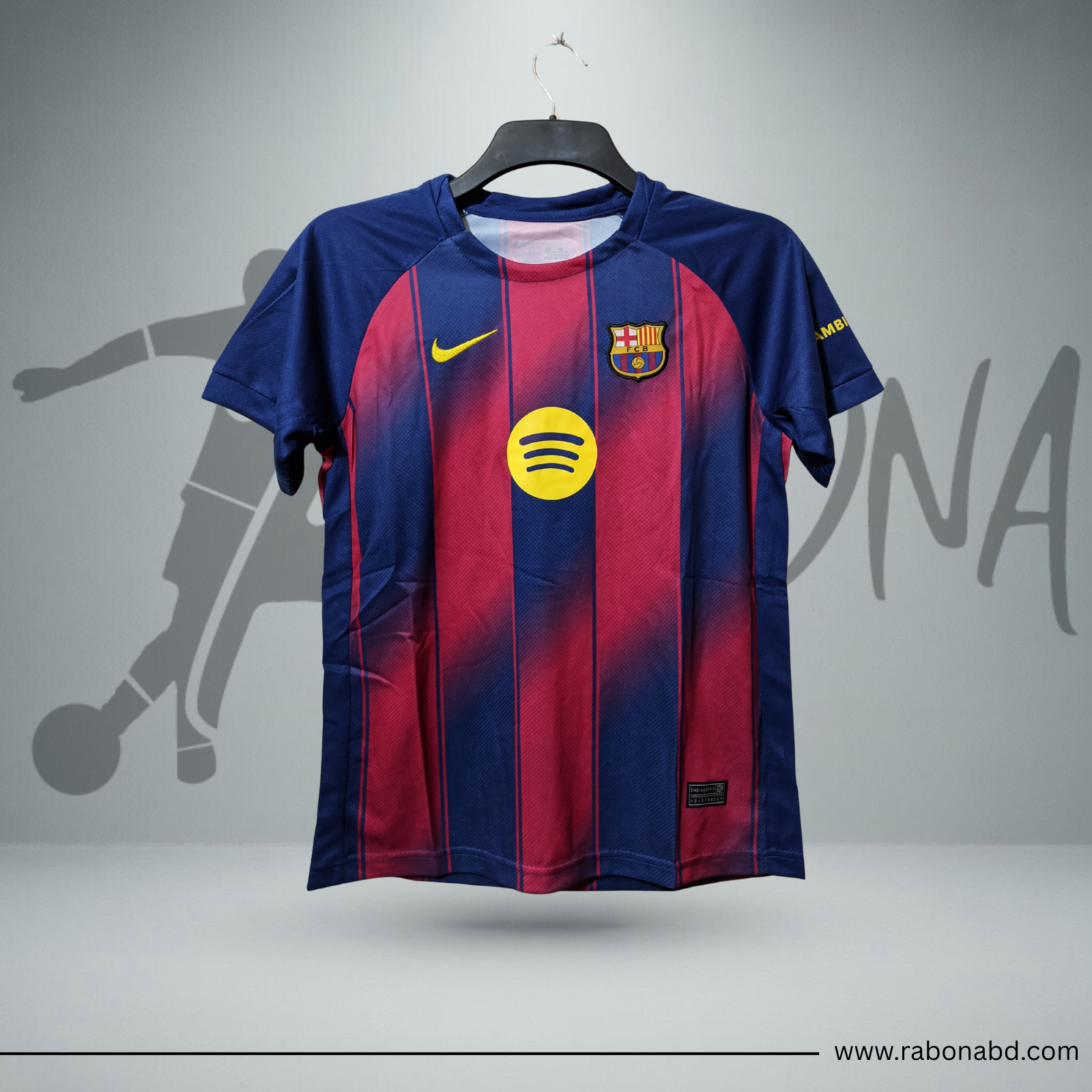 Designed with the iconic blaugrana stripes, this jersey features a gradient effect in blue and red tones that gives it a modern and dynamic style. The FC Barcelona crest is placed on the chest, on the left side, while the Nike logo appears on the right side.