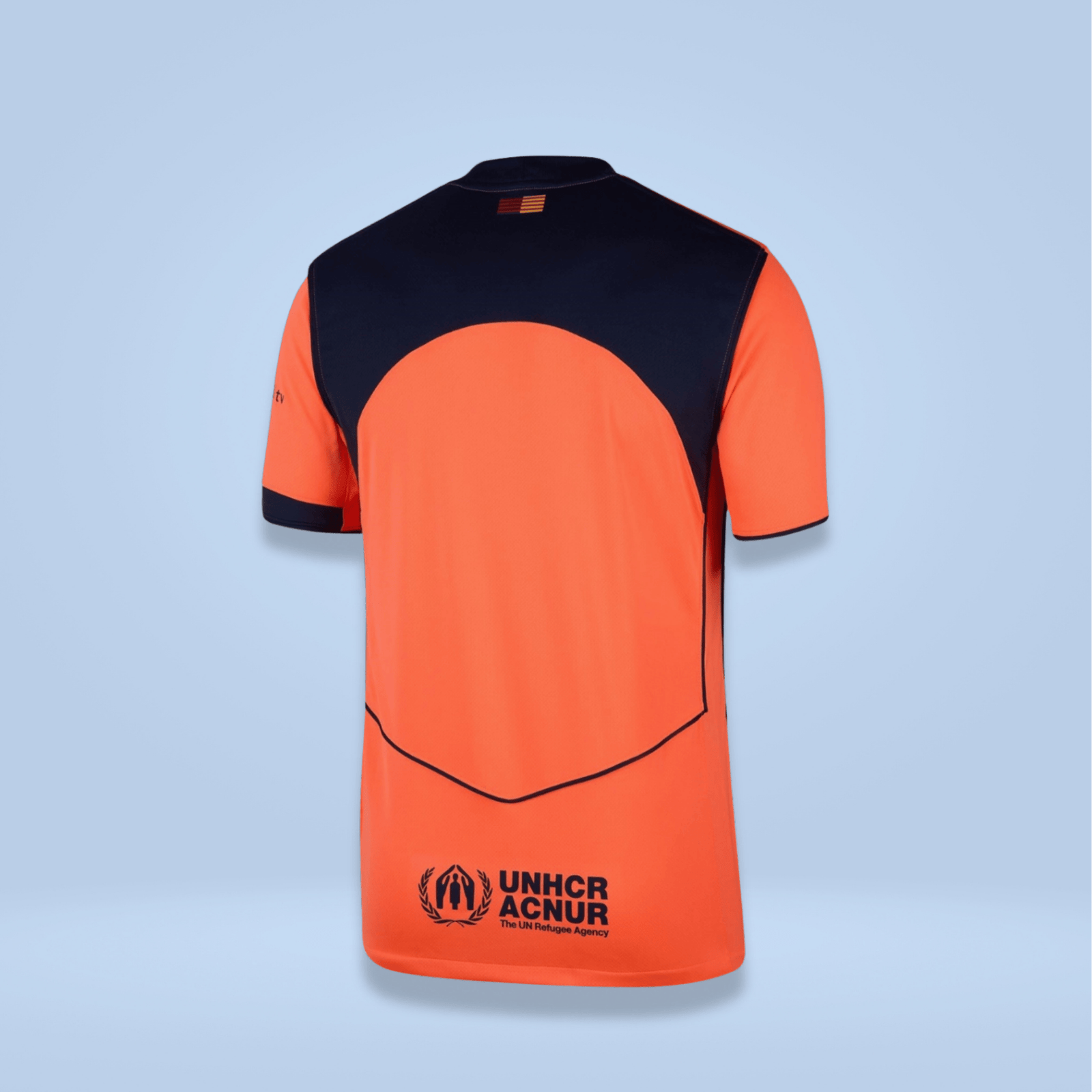 The FC Barcelona 2025/26 T90 Third Kit evokes the nostalgia and brilliance of the club’s history. With orange and navy details, this kit embodies the winning spirit that defines Barça’s endless victories.