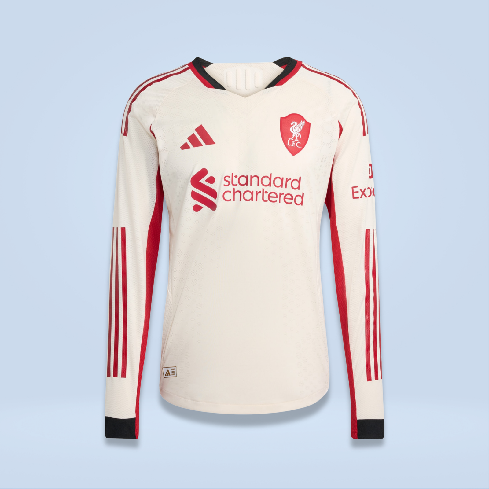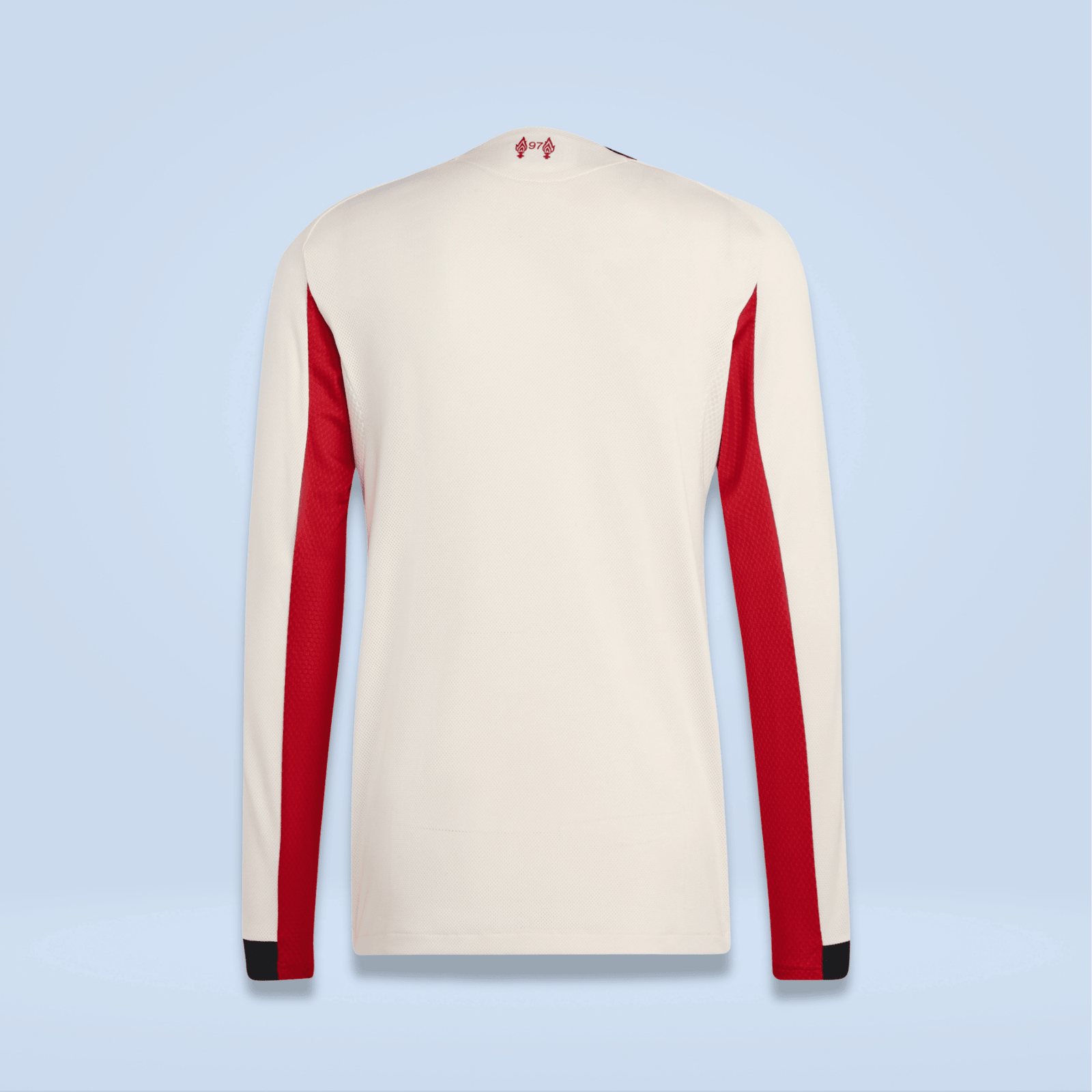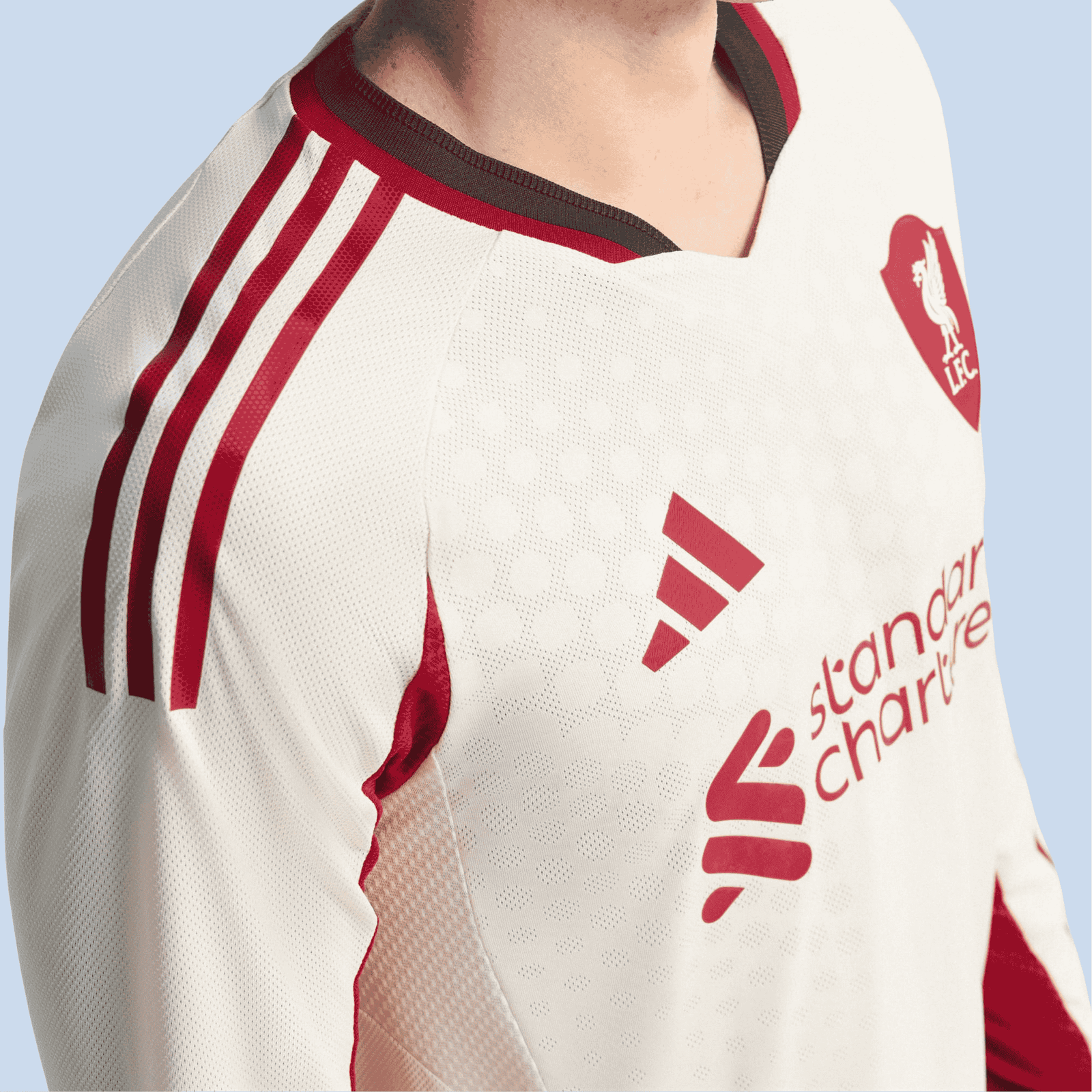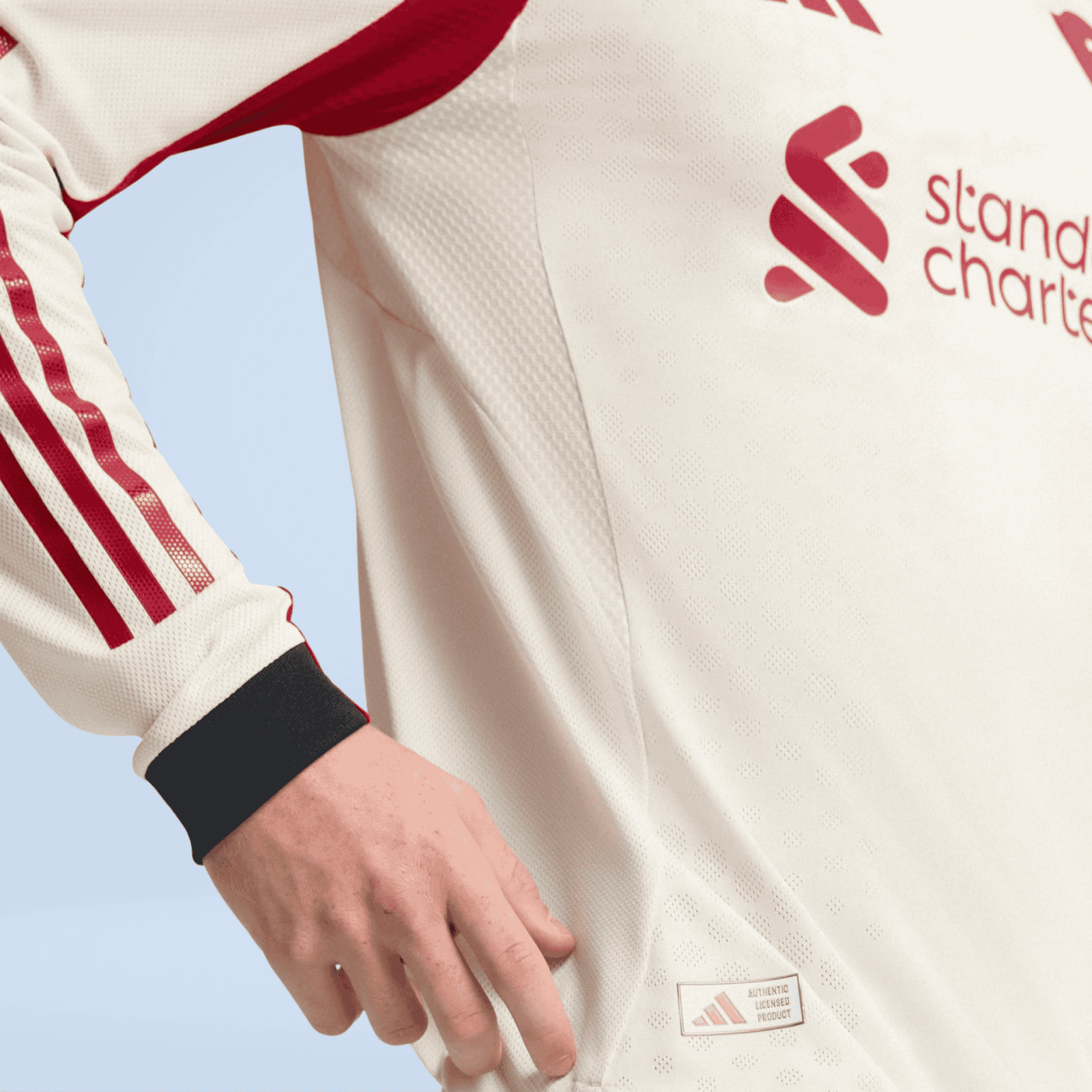 In the 25/26 season, everywhere is Anfield. Created to represent Liverpool FC’s iconic home ground on away days, this adidas long sleeve authentic jersey displays a specially made crest whose shape was inspired by the arched gable atop the stadium’s old Main Stand. Designed to help the team win on the road, this performance-focused soccer shirt comes in an off-white shade that will be familiar to Reds who know their history.