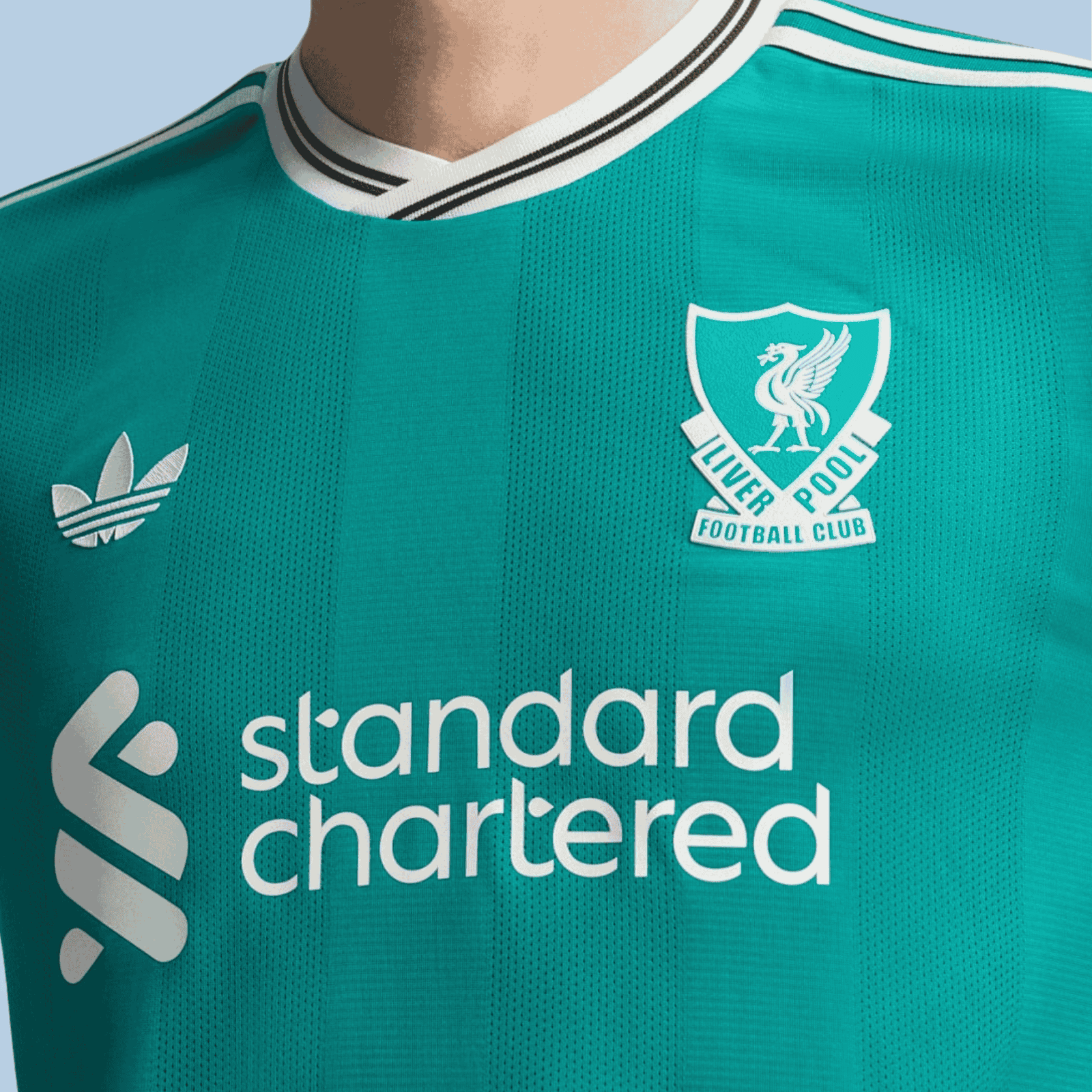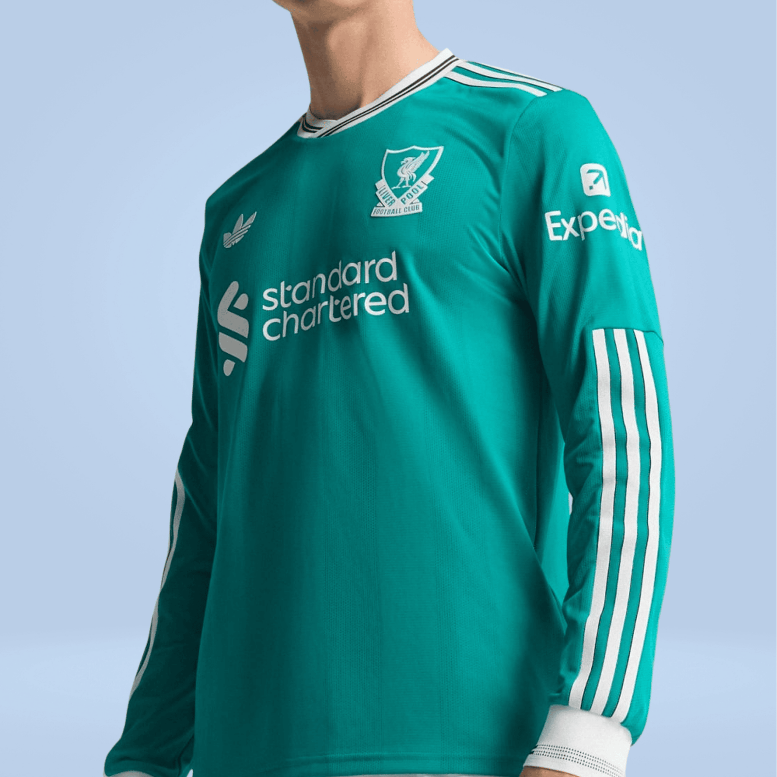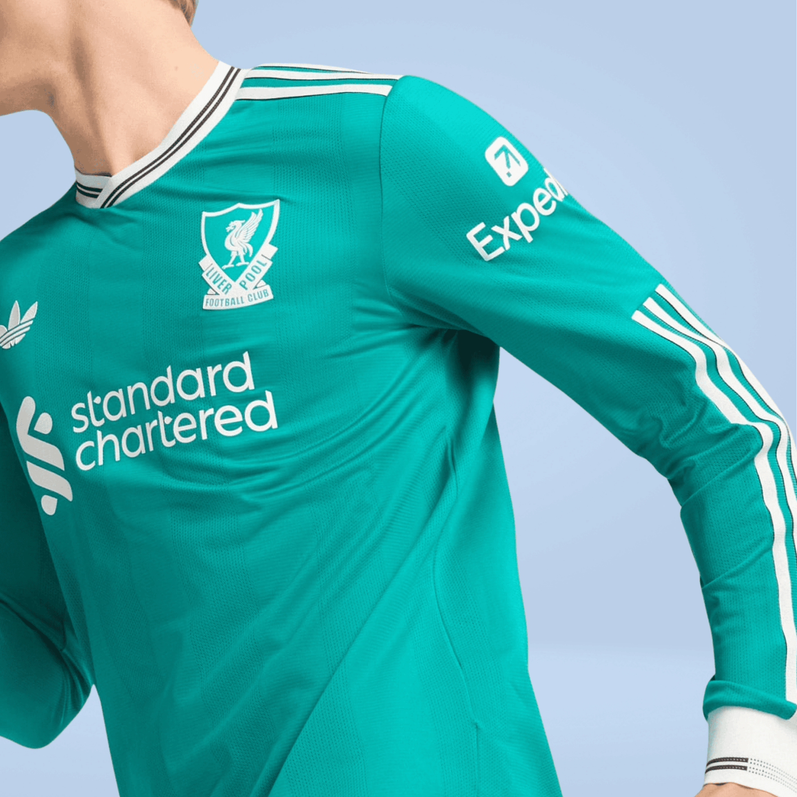 A modern soccer classic inspired by Liverpool FC’s storied 3-Stripes history. The tonal vertical stripes on this elegant third authentic jersey come in unmistakable adidas Equipment green. On the chest, that vintage club badge shares the spotlight with a Trefoil for the first time since 1991. Created to collect wins on the road, this performance-focused long sleeve shirt will feel as good as it looks every time you pull it on.
