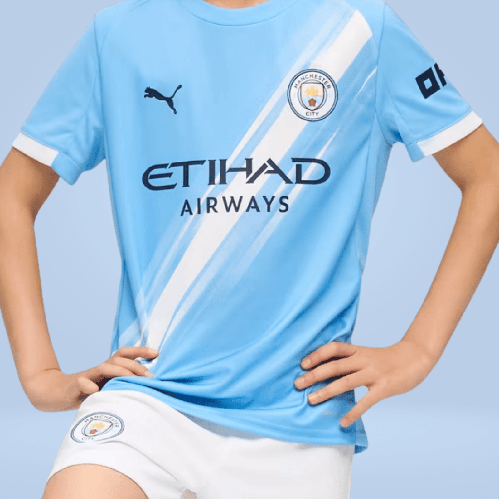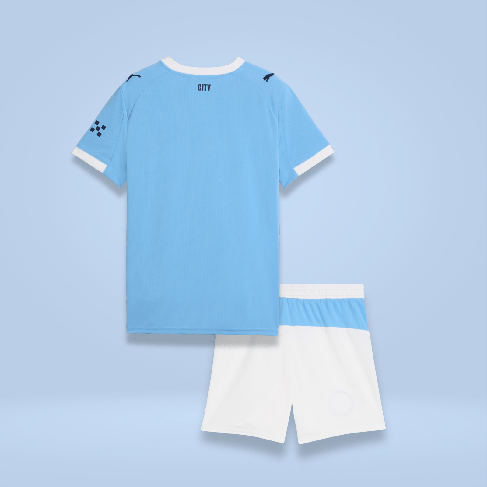 Dress your young football fan in the iconic blue and white with our official 2025/26 Manchester City Full Kit for Kids. This complete set includes jersey & shorts, allowing your little one to showcase their unwavering support for one of the most successful football clubs in the world.