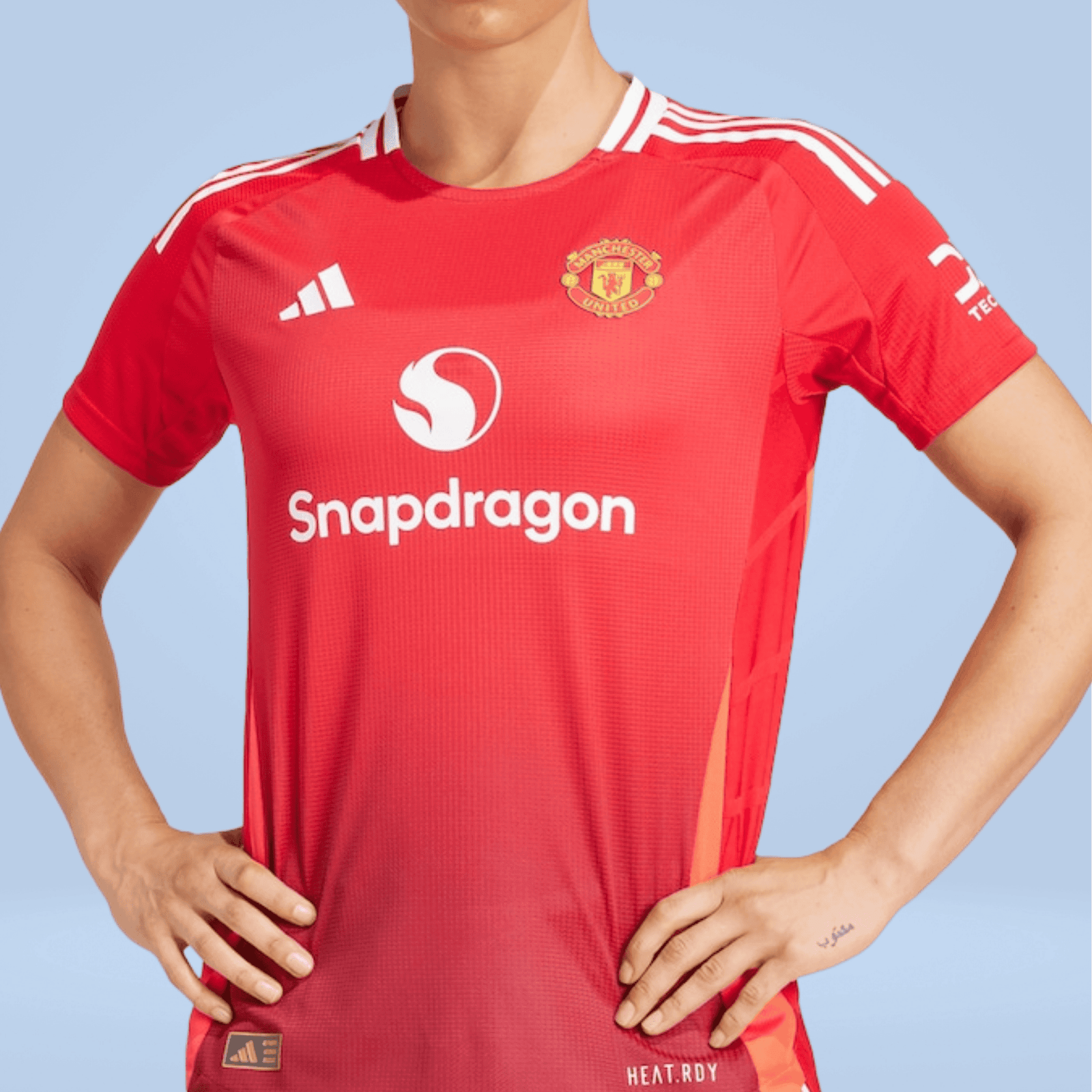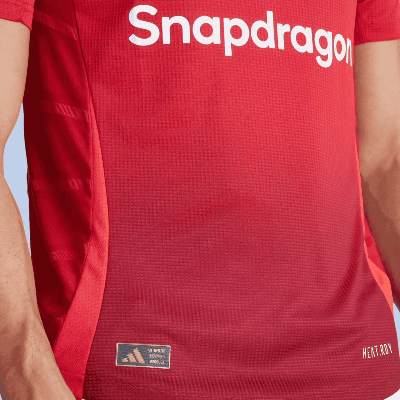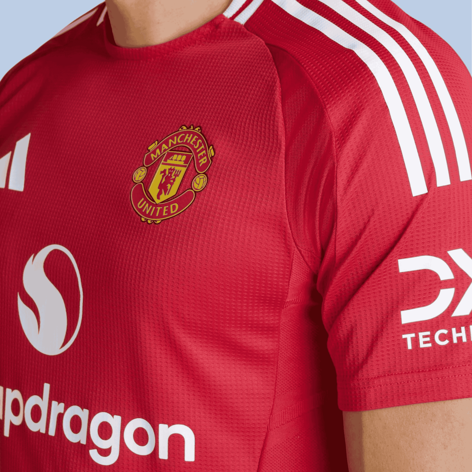Manchester United at Old Trafford. Home fans adore them and even rivals can’t ignore them. In 24/25, the club’s timeless home jerseys shout even louder with bright red inserts on the sides and a subtle gradient design on the front and back. This adidas authentic version includes ventilating HEAT.RDY and lightweight details for confident football. This product is made with 100% recycled materials. By reusing materials that have already been created, we help to reduce waste and our reliance on finite resources and reduce the footprint of the products we make.