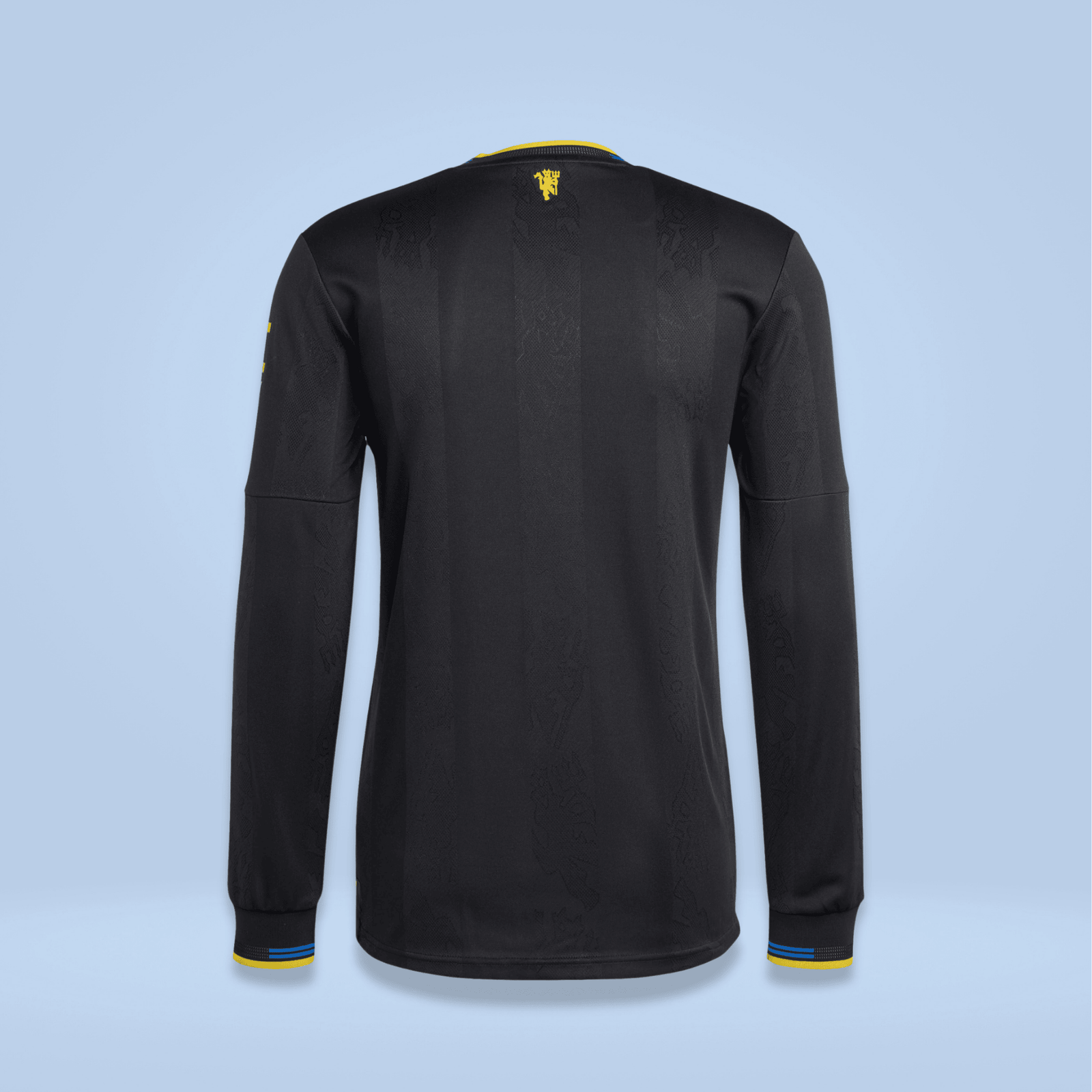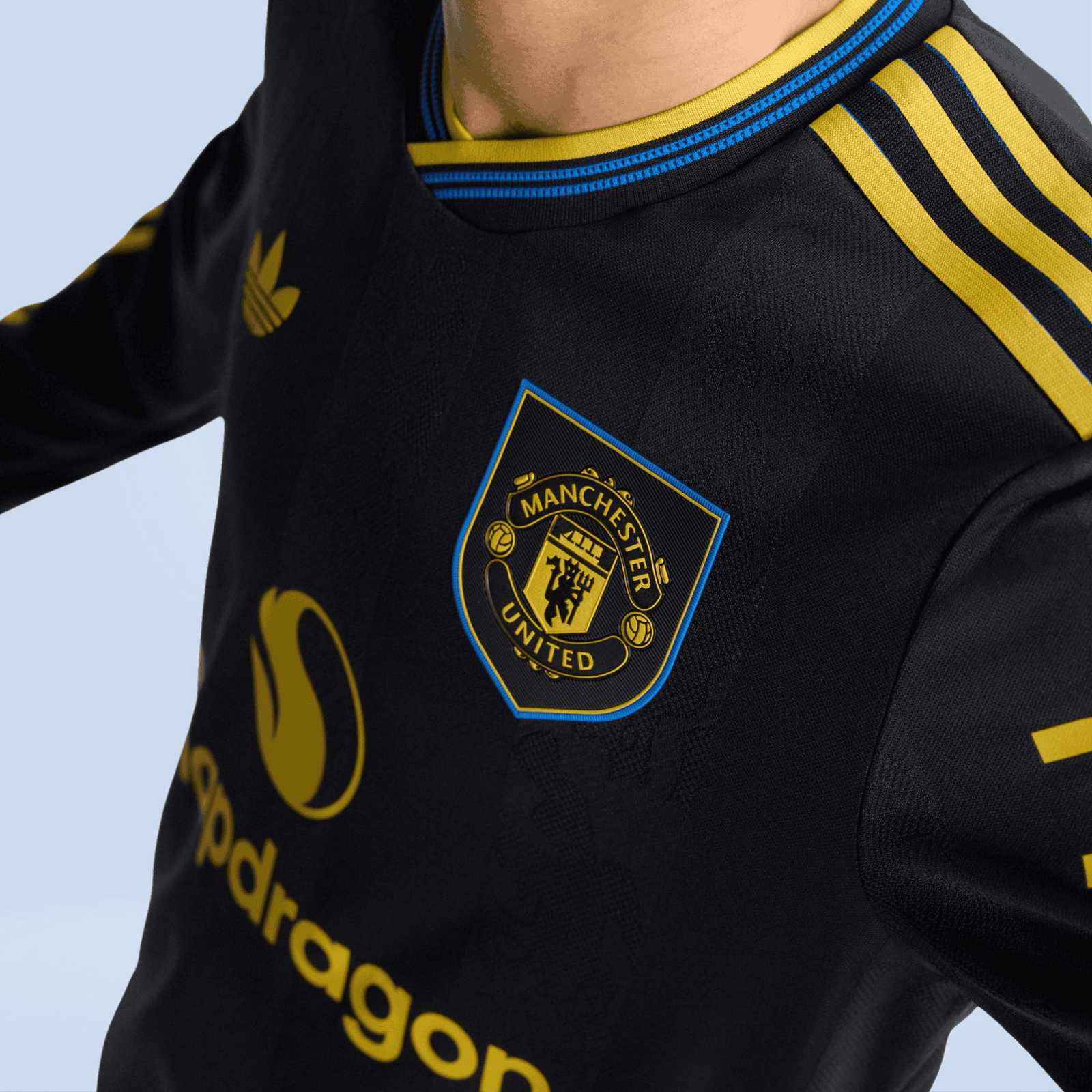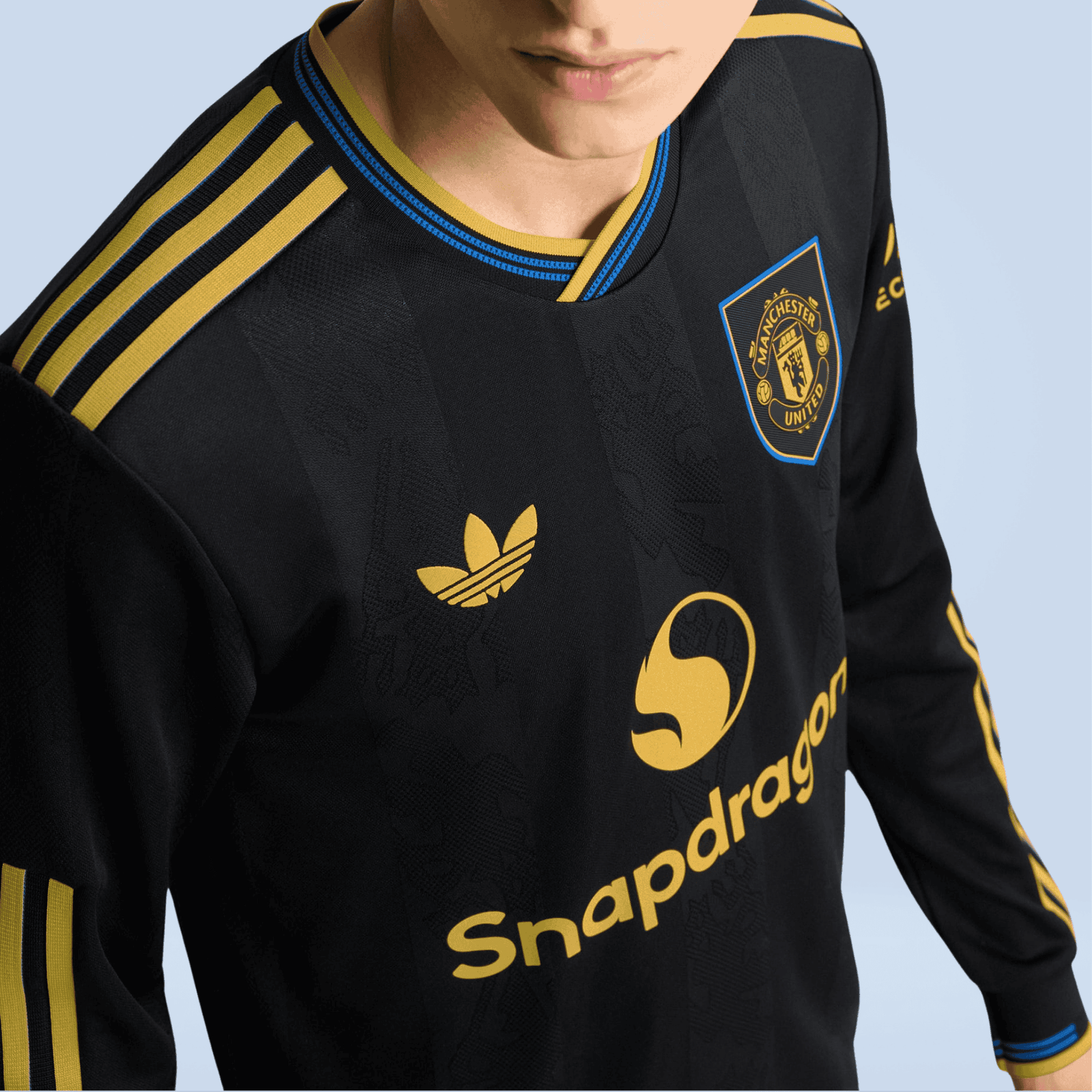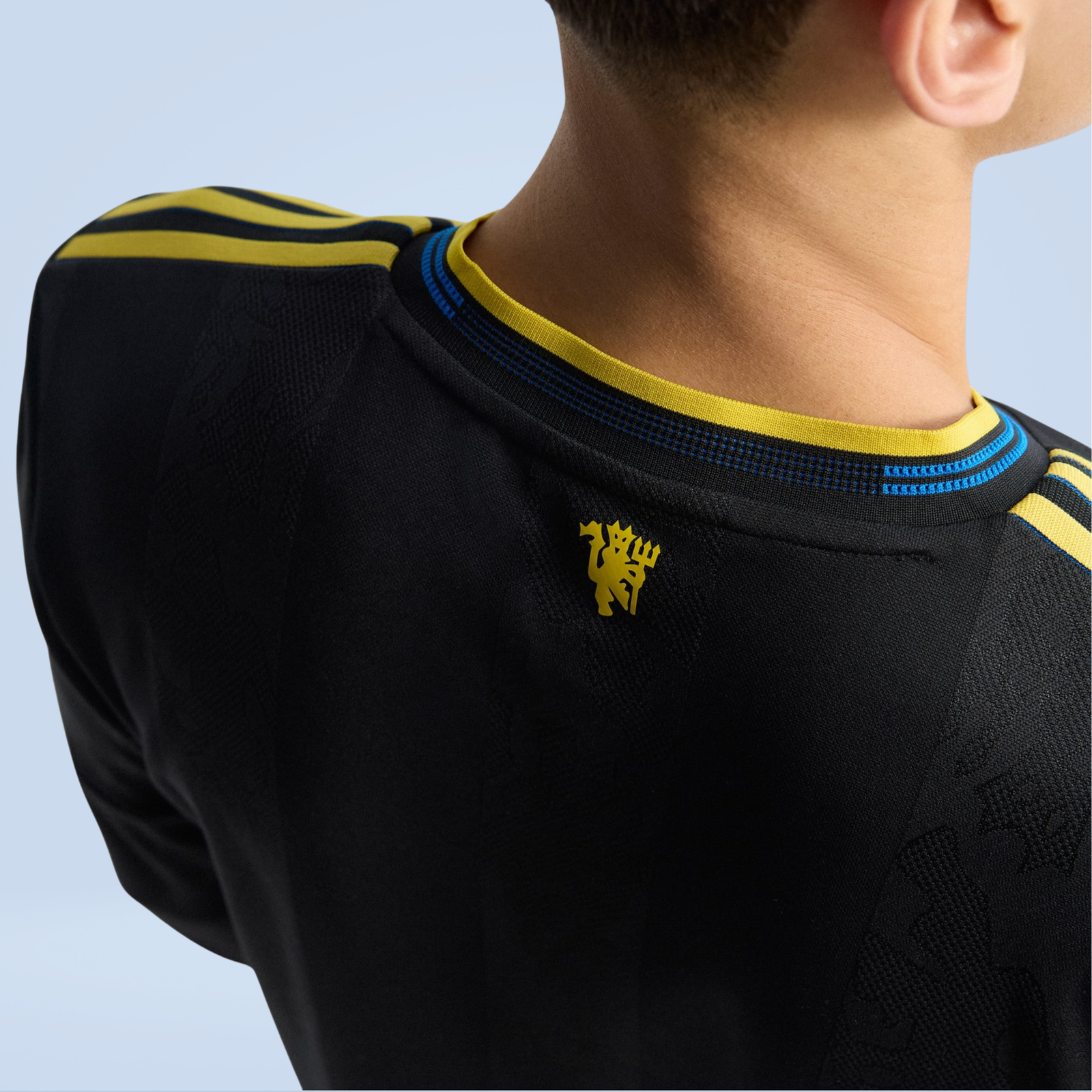 Part of a clean, classic adidas kit that will transport fans to a golden era. Finished in black, this Manchester United authentic third jersey conjures some of the club’s most iconic players and memorable away performances. A yellow Trefoil and club badge stand out on the chest while more subtle, devilish details are woven into the fabric. Lightweight and focused on performance, this eye-catching long sleeve shirt was made to create new soccer memories.