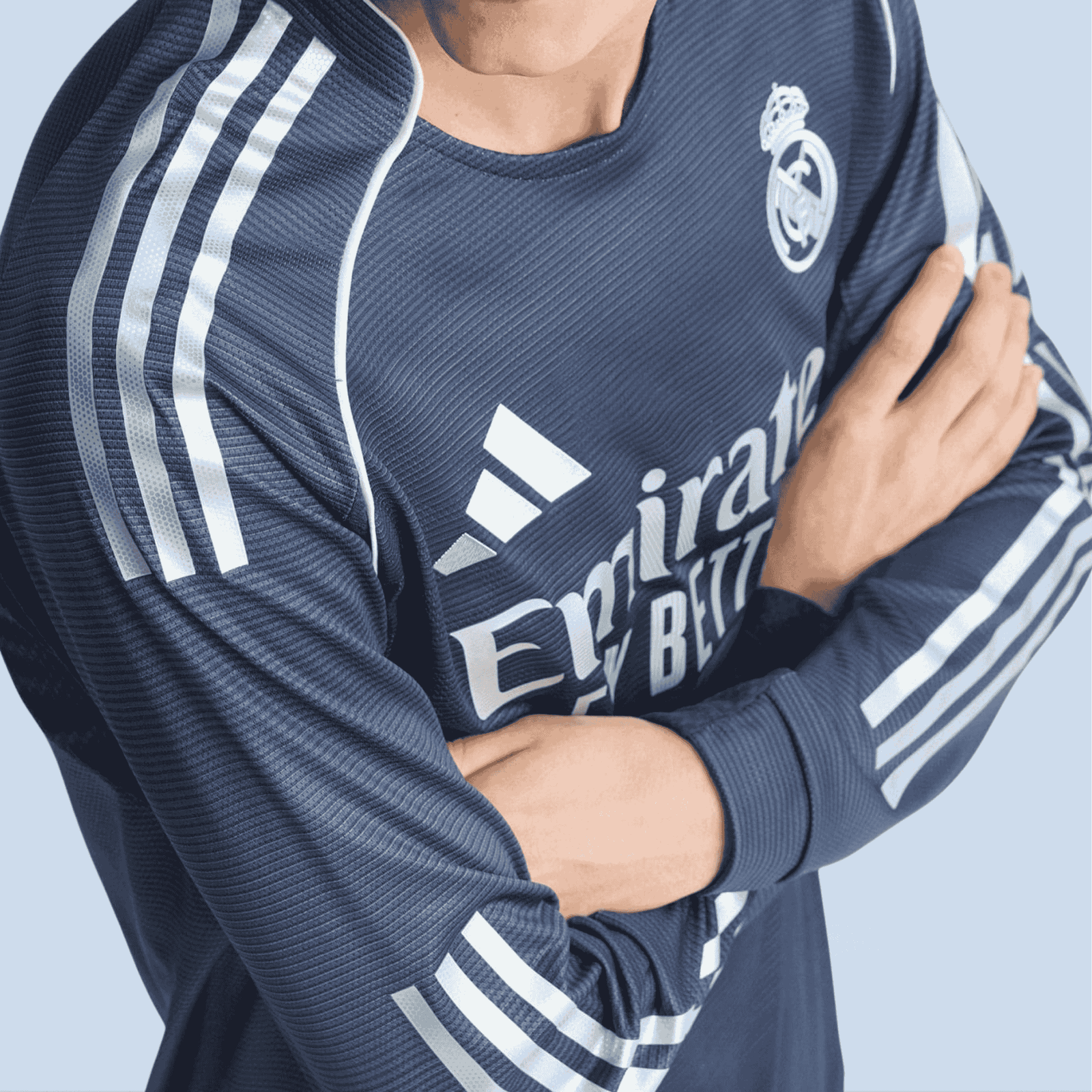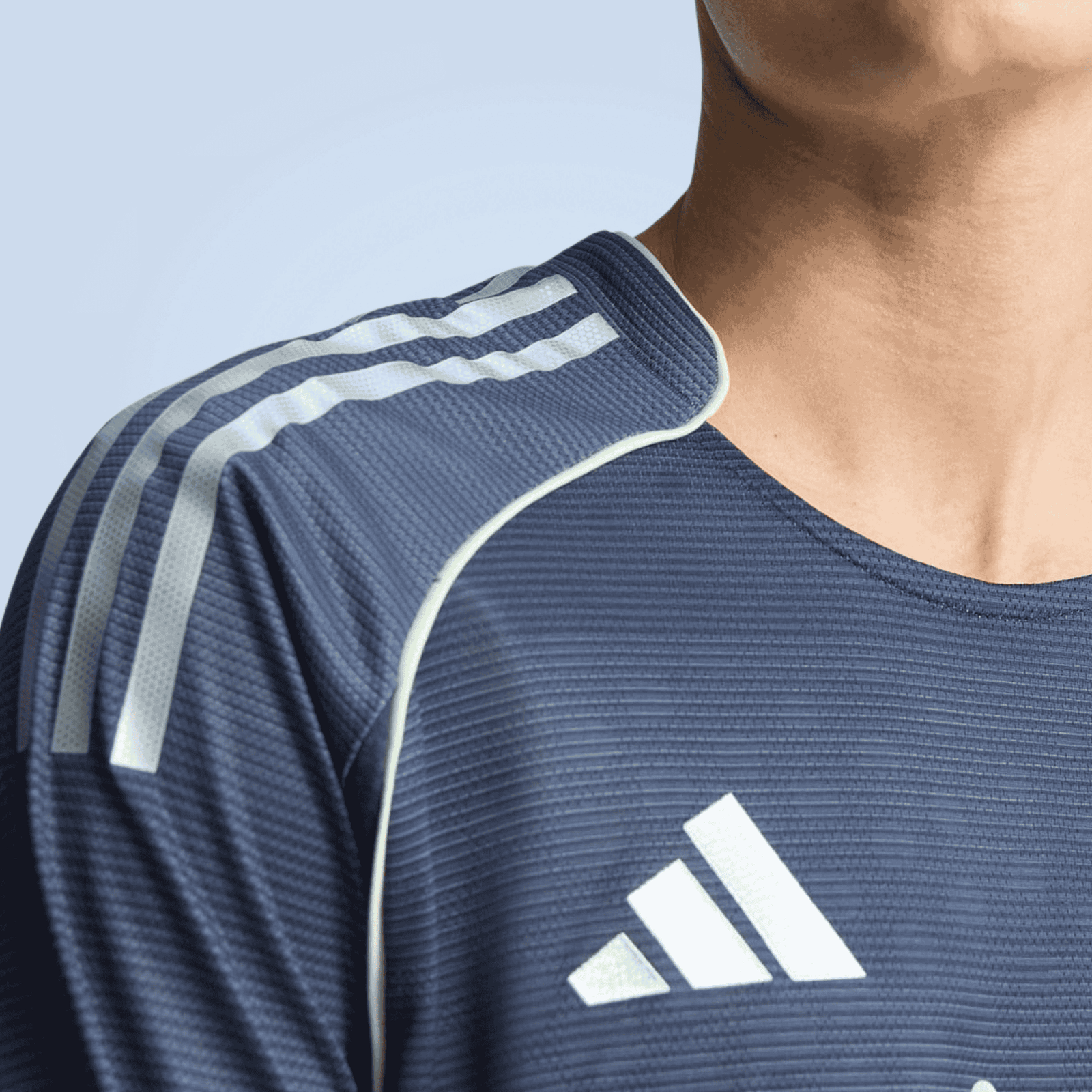 As Real Madrid’s world-famous stadium enters a brand-new era, this adidas away authentic jersey pays tribute to magical nights at the Santiago Bernabéu. Its moiré effect print and silver metallic details combine to mimic the gleaming facade of the renovated arena. The performance-focused construction ensures the club’s players feel an advantage at away grounds as well as at their legendary soccer home.