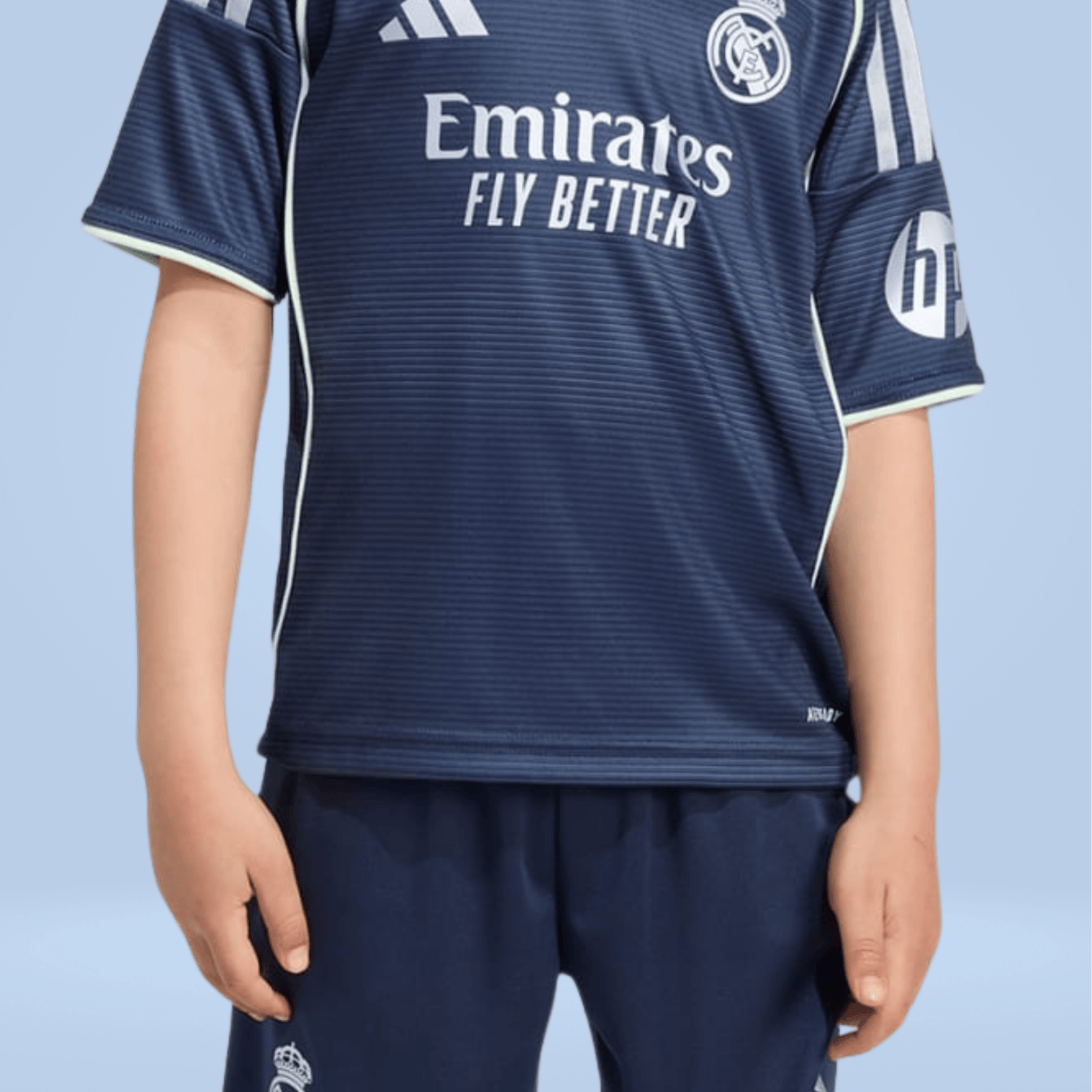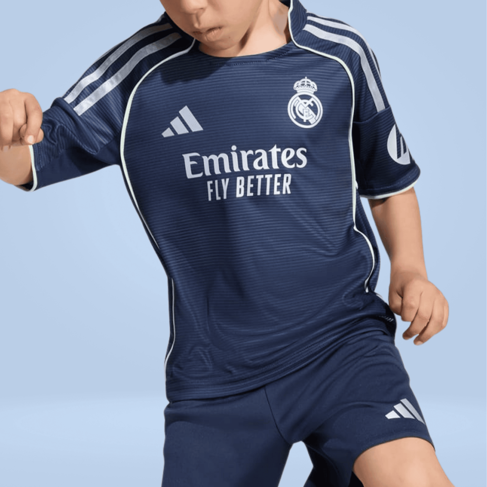 Whether they’ve been to the magical Bernabéu or not, your young football fan can show their support in this stadium-inspired kids’ adidas kit. A sized-down version of the away kit like the players wear, it displays a moiré effect print and silver metallic details that mimic the arena’s gleaming facade. Moisture-managing AEROREADY keeps them dry all day.