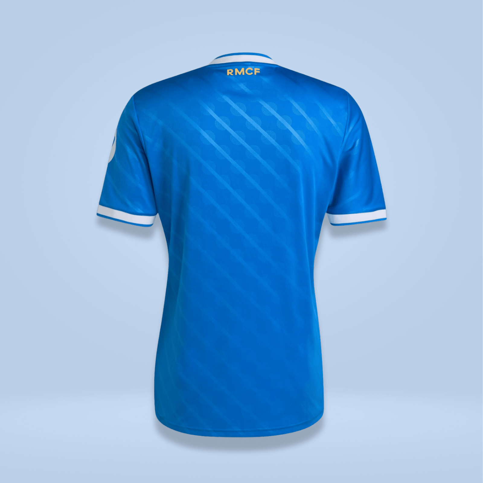 At home in blue. This Real Madrid third jersey comes in a hue that’s close to the hearts of Madridistas and 3-Stripes fans. A classic adidas Originals colorway and a subtle nod to the Bernabéu’s identity, it’s the perfect shade to celebrate the ultimate soccer partnership. Serrated 3-Stripes and a Trefoil add extra adidas heritage. Moisture-managing AEROREADY keeps fans focused.